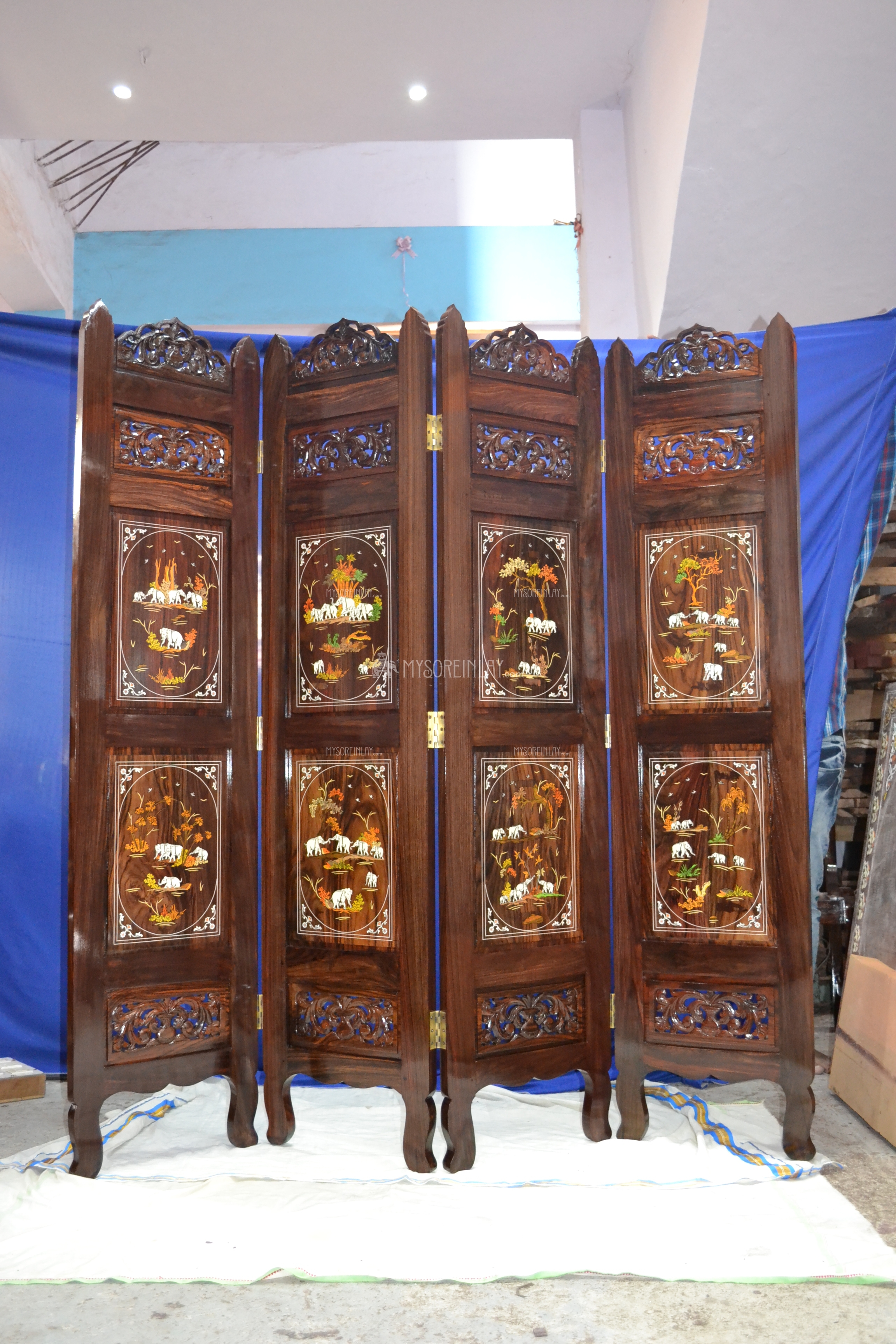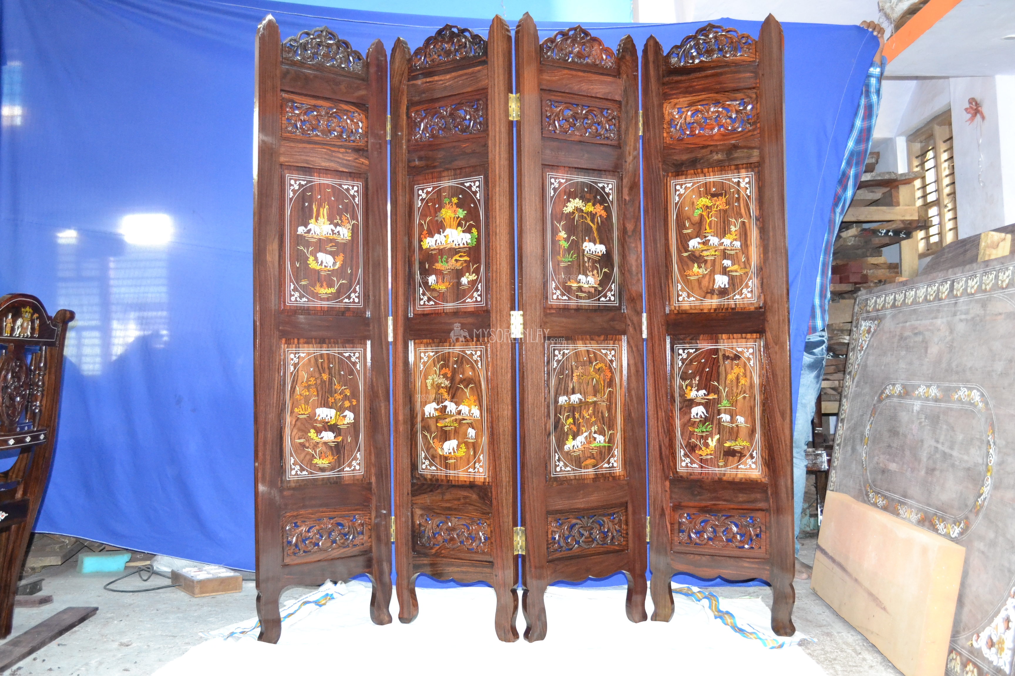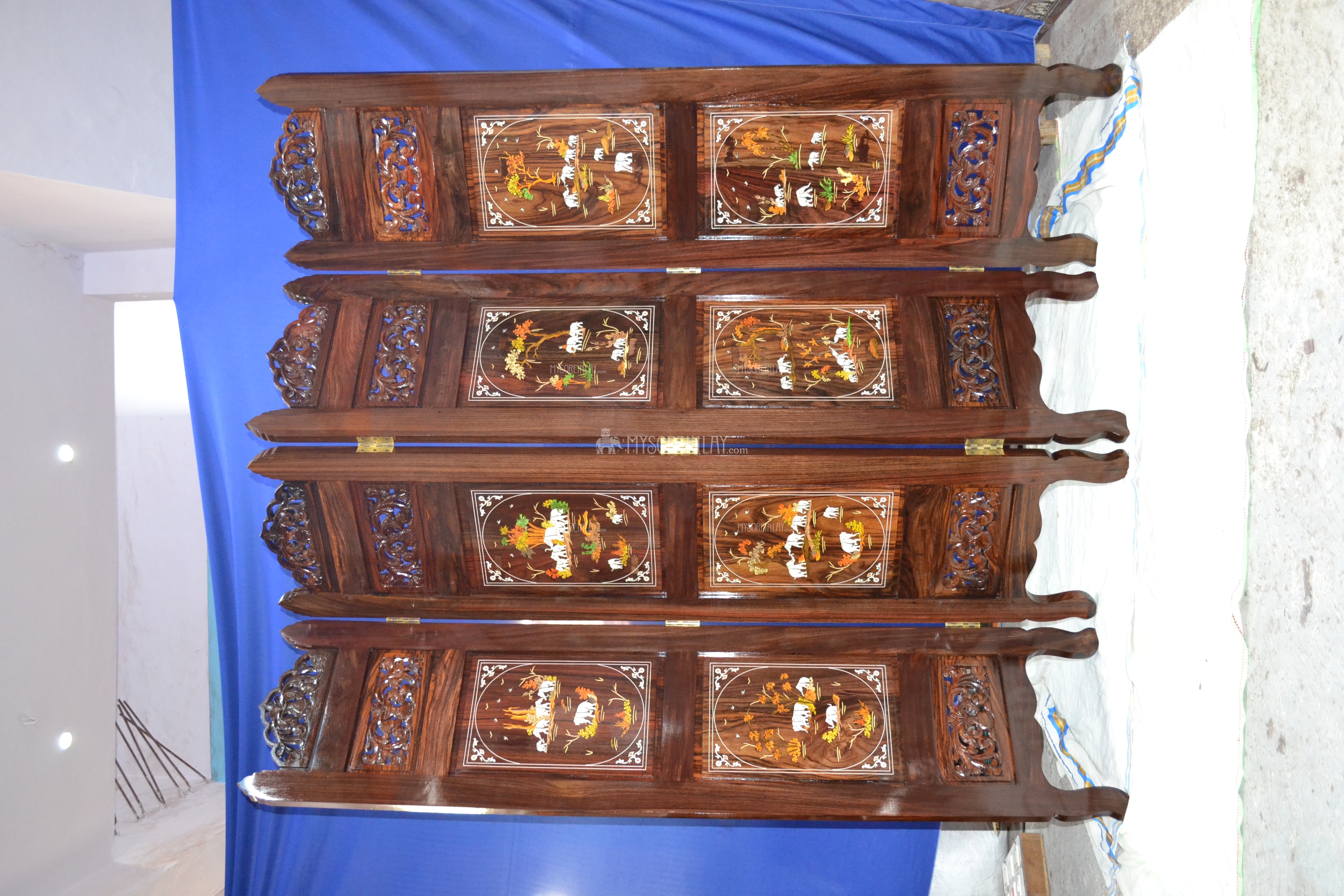 rosewood partition of elephant inlay and carvings of 6 x 6 feet